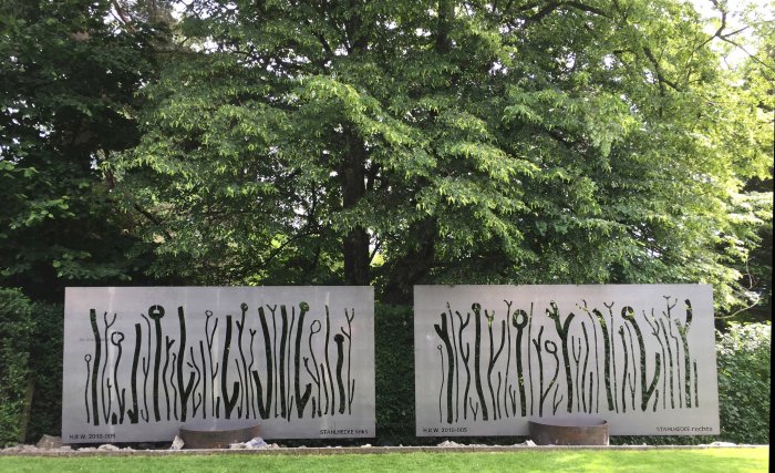 Stahlhecke, Skulptur gelasert, 200 x 400 x1 cm