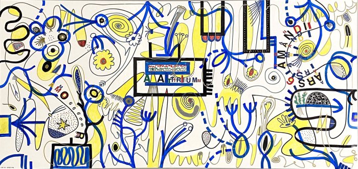 Filzstift Zeichnung & Collage, auf Plexi, 65 x 138 cm